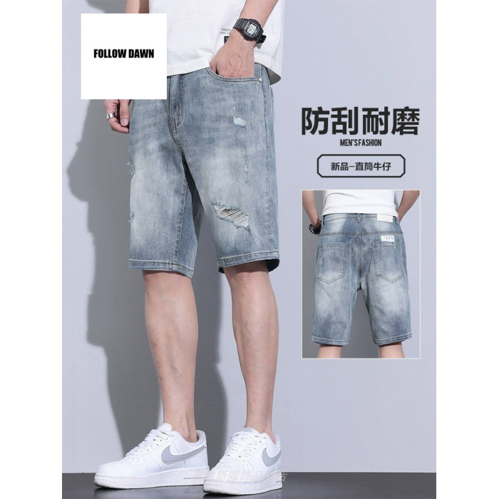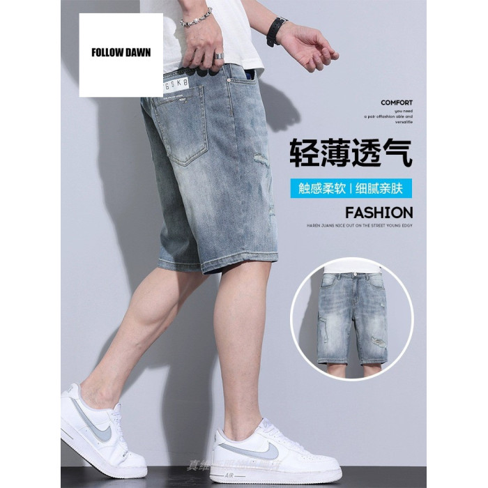 夏天牛仔短褲男士夏季薄款馬褲中褲男褲休閒五分褲子