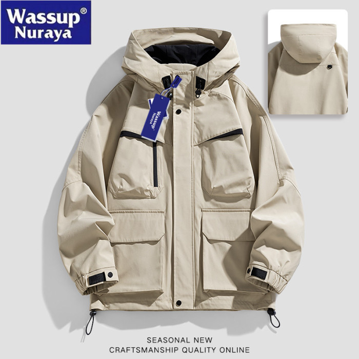 WASSUP Nuraya潮牌春秋連帽夾克男生寬松休閒戶外防水沖鋒衣外套