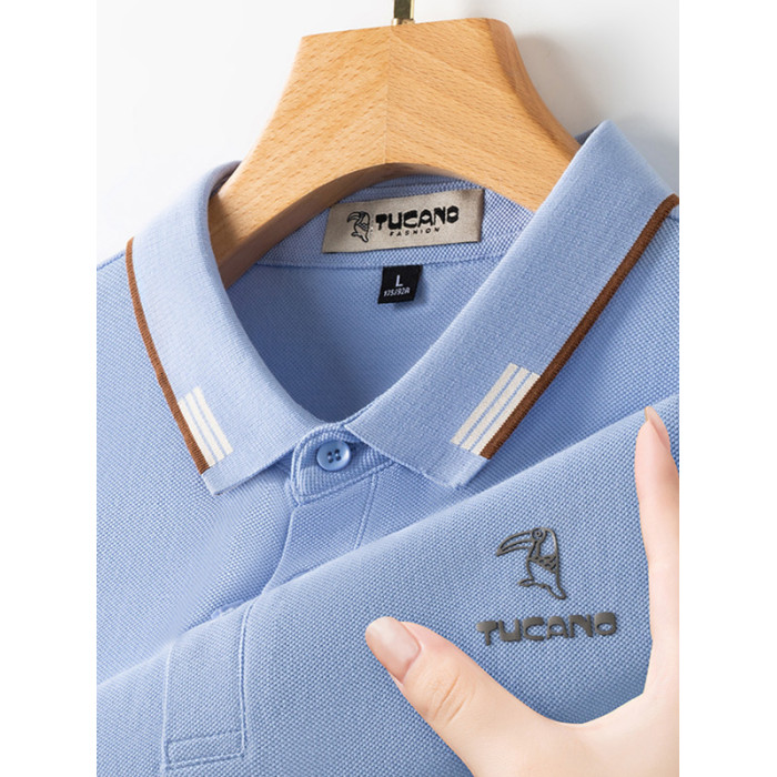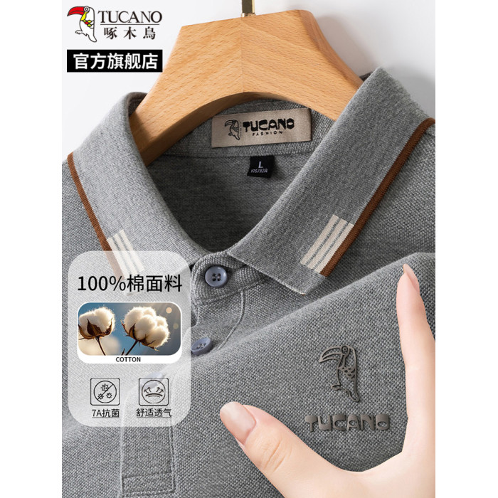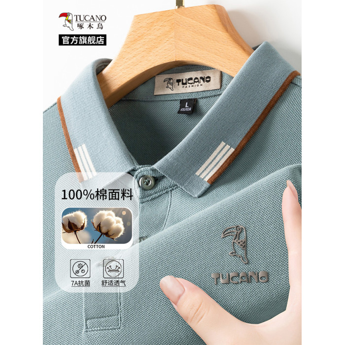 啄木鳥7A抗菌純棉短袖T恤男夏季新款中年爸爸商務翻領POLO衫上衣H