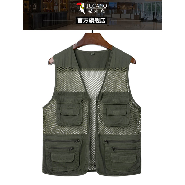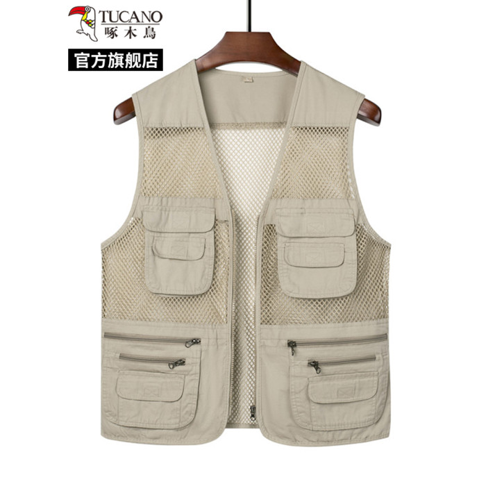 【100%純棉】啄木鳥夏季薄款網眼馬甲登山休閒多口袋背心坎肩男C