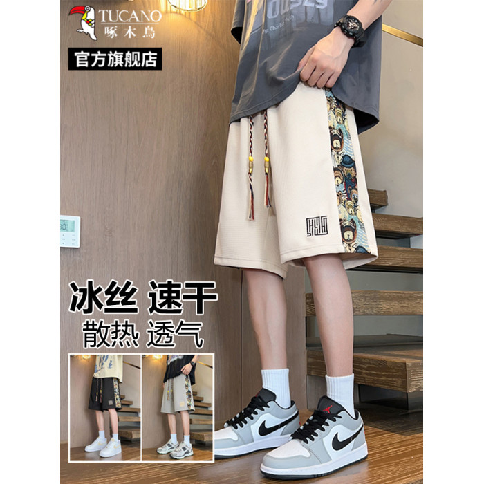 啄木鳥短褲男士夏季2025新款寬松加肥加大碼運動五分休閒沙灘褲L