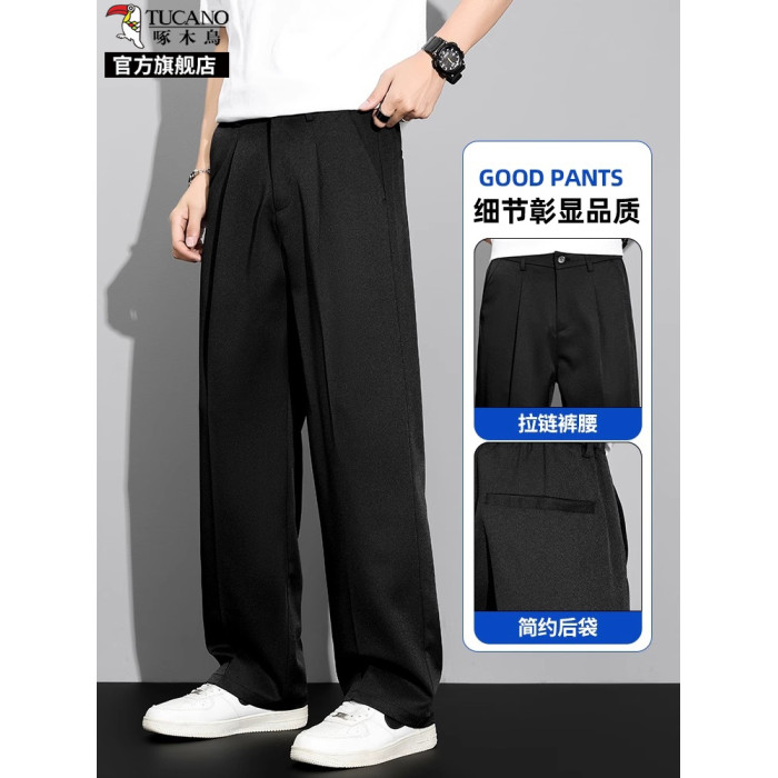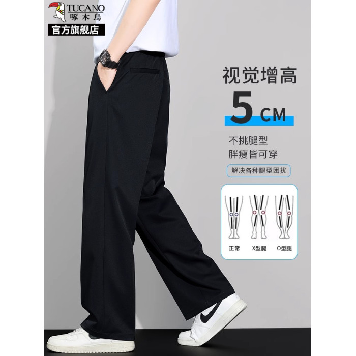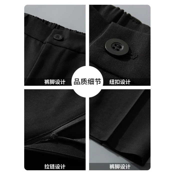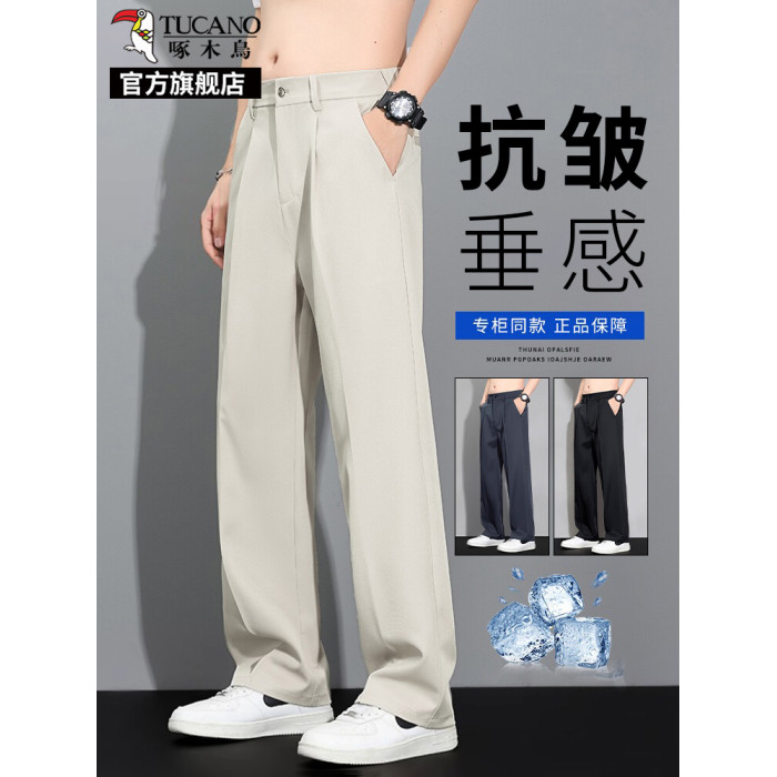 啄木鳥冰絲休閒褲男士夏季新款直筒修身小西褲彈力商務西裝褲子K