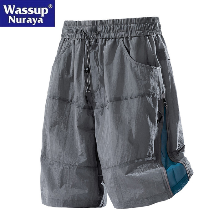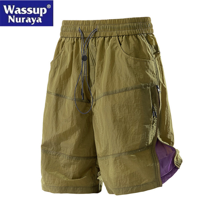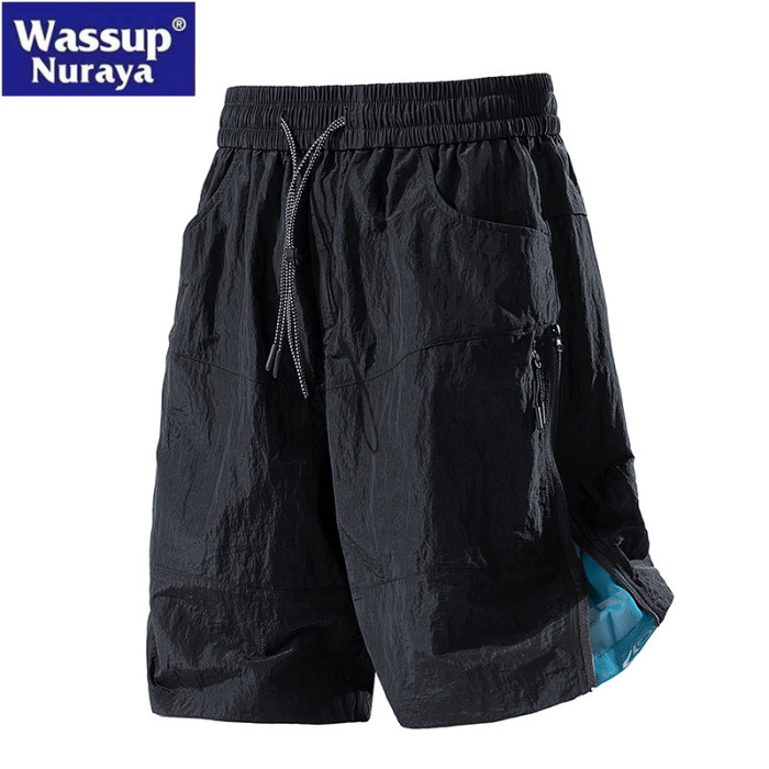 WASSUP Nuraya潮牌撞色速乾冰絲運動短褲男夏季薄拉鍊透氣五分褲