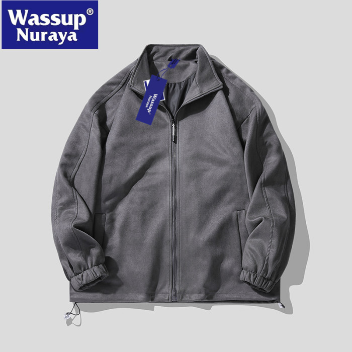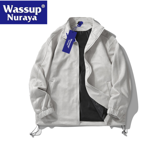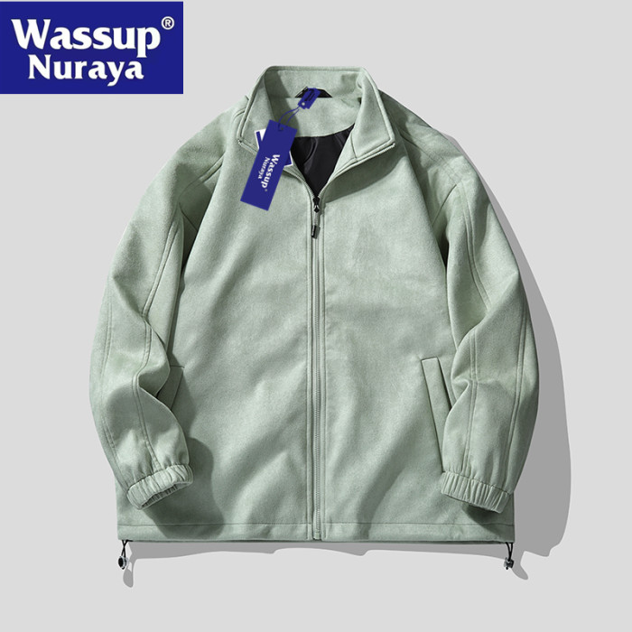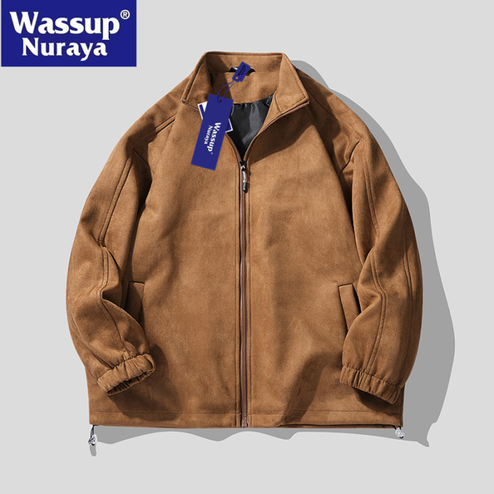 WASSUP Nuraya潮牌麂皮絨夾克男士春季立領青少年學生情侶外套
