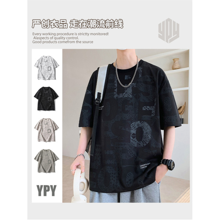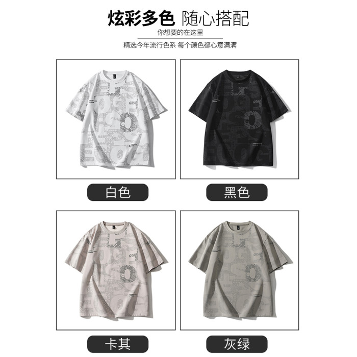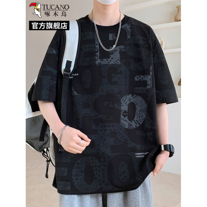 啄木鳥短袖t恤男士夏季2025新款潮牌滿印半袖寬松胖子大碼上衣服L