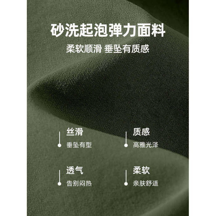 【短袖襯衫2件套】上衣軍綠-米灰褲(不含短袖)
