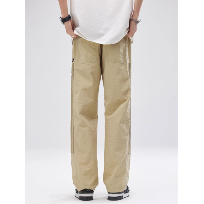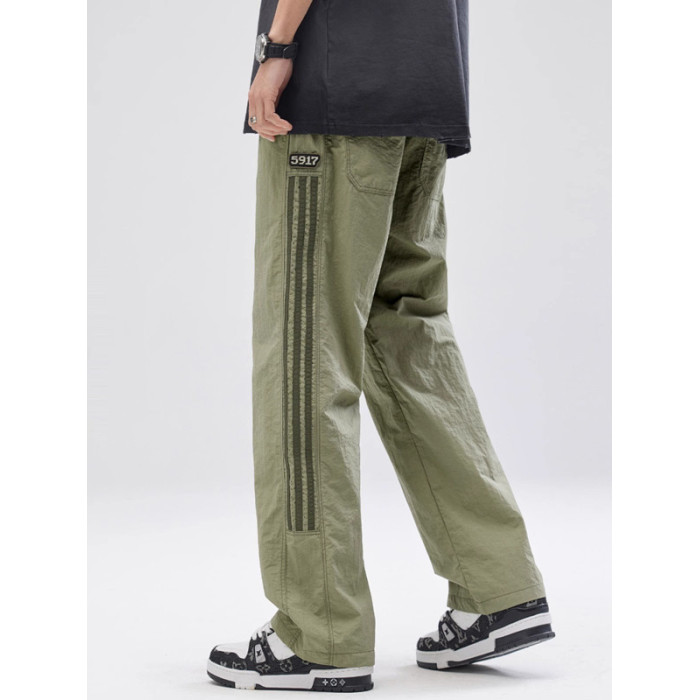 美式三條桿褲子男2025夏季薄款涼感速乾褲濶腿寬松直筒休閒長褲