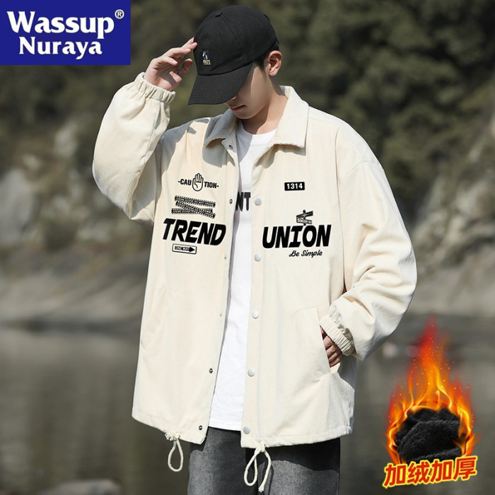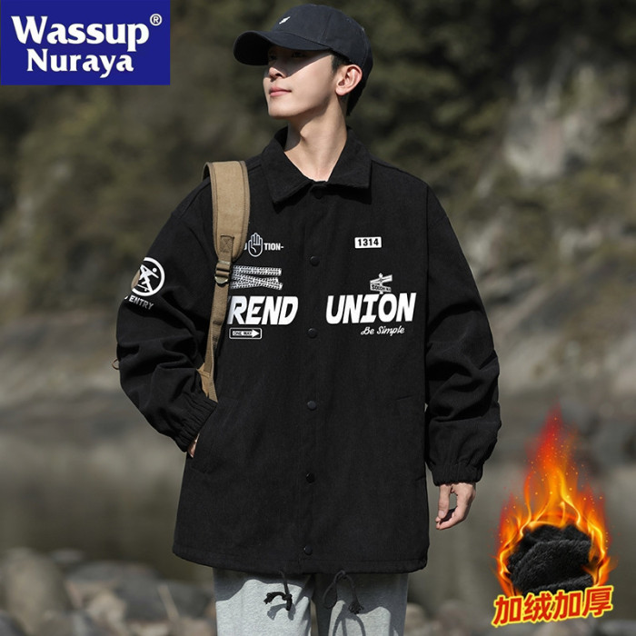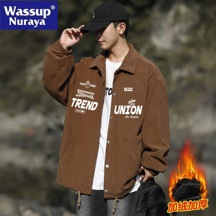 WASSUP NURAYA燈芯絨外套男士潮牌寬松百搭休閒工裝秋冬加絨夾克