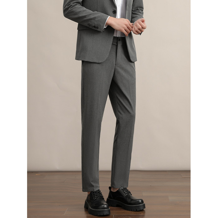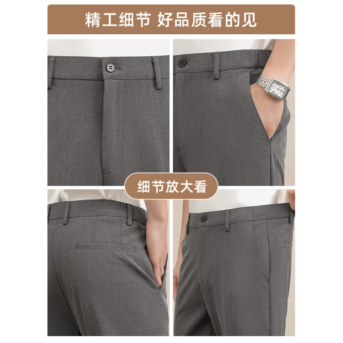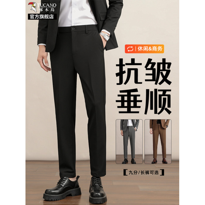 啄木鳥冰絲休閒褲男士夏季薄款修身直筒九分褲商務正裝西裝褲子K