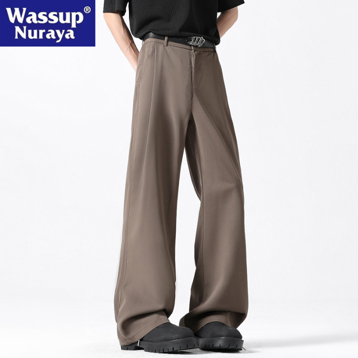 WASSUP NURAYA三本針黑色垂感休閒西褲男夏季寬松直筒褲西裝褲子