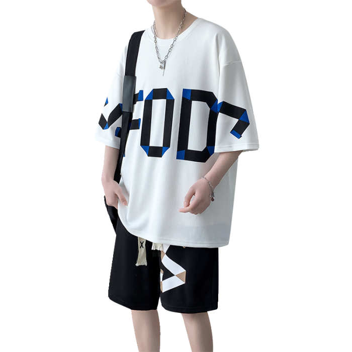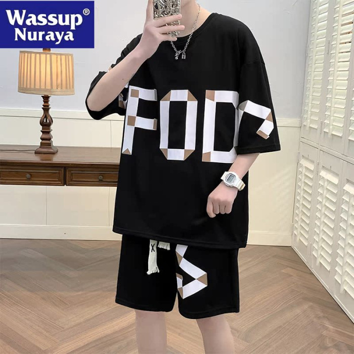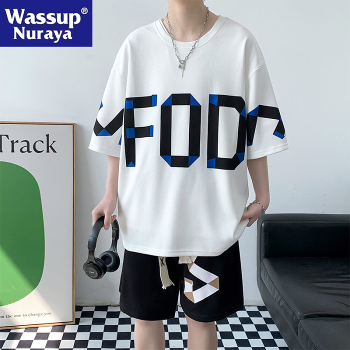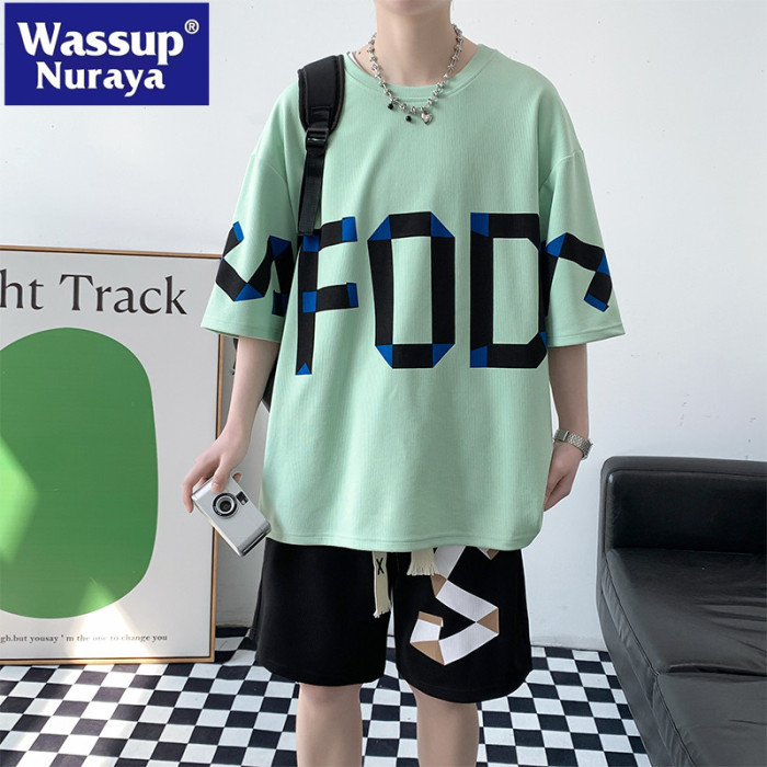 WASSUP NURAYA潮牌休閒運動套裝男夏季寬松青年短袖短褲兩件套裝