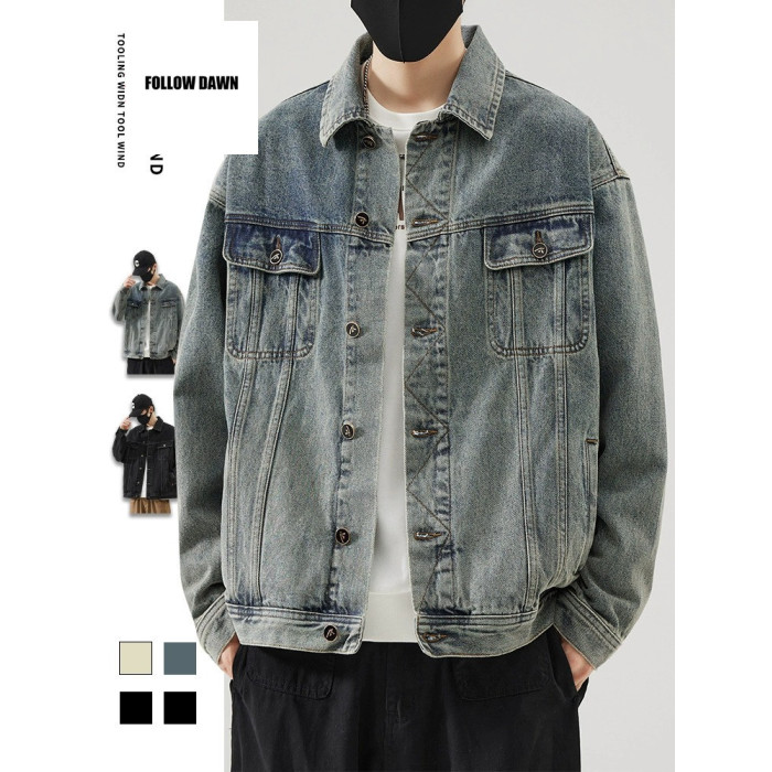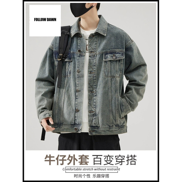 牛仔外套男士秋季工裝夾克春秋新款潮流復古翻領襯衫男款