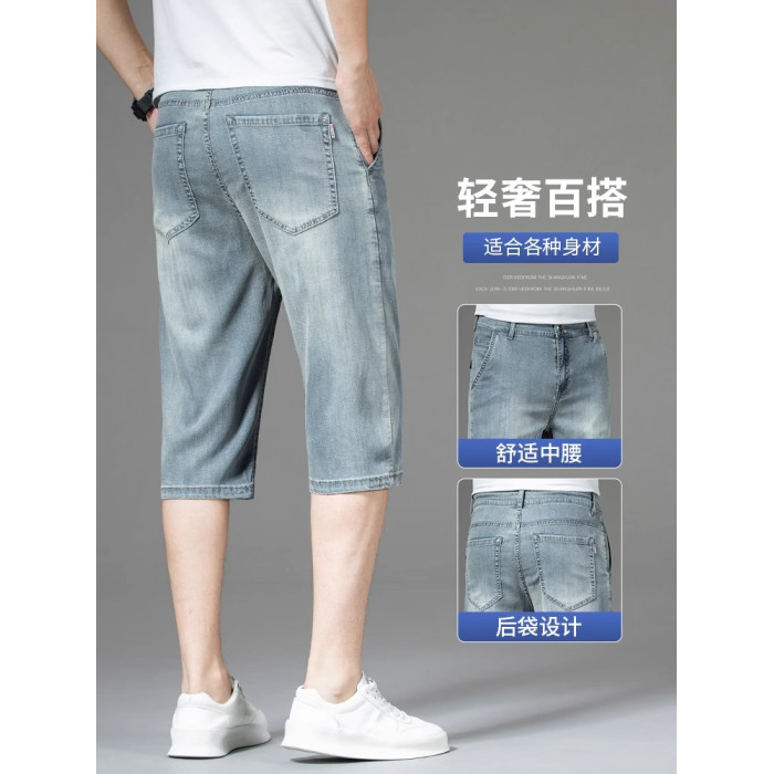 啄木鳥天絲牛仔短褲男士七分褲夏季薄款2025新款寬松冰絲7分褲子K