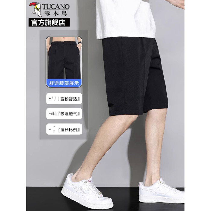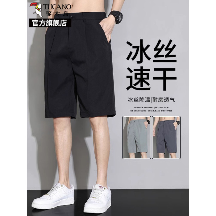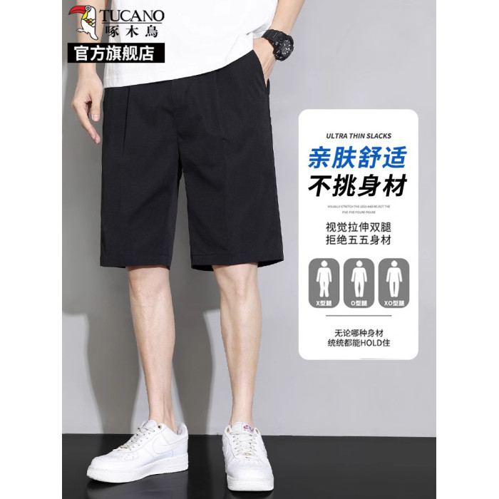 啄木鳥黑色冰絲休閒短褲男士夏季新款商務西褲短褲男生五分褲子K