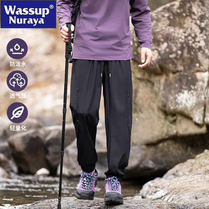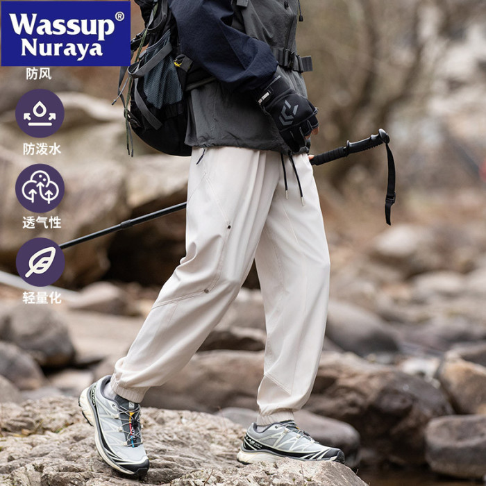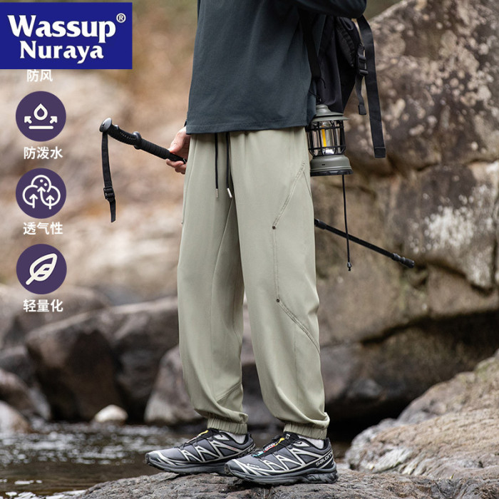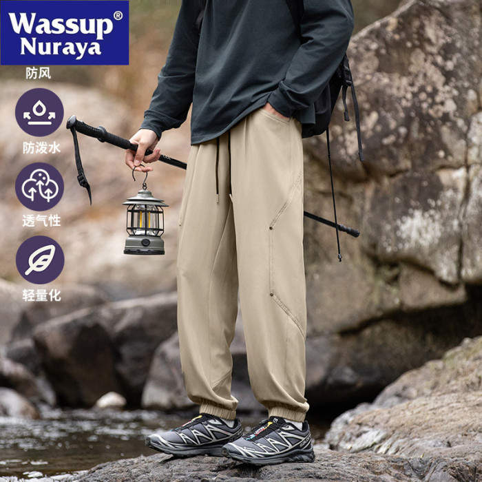 WASSUP NURAYA2025春秋新款束腳休閒褲男潮牌抽繩工裝松緊高街褲