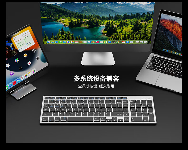 金屬灰【無線藍牙鍵磐全尺寸】系統全兼容可充電