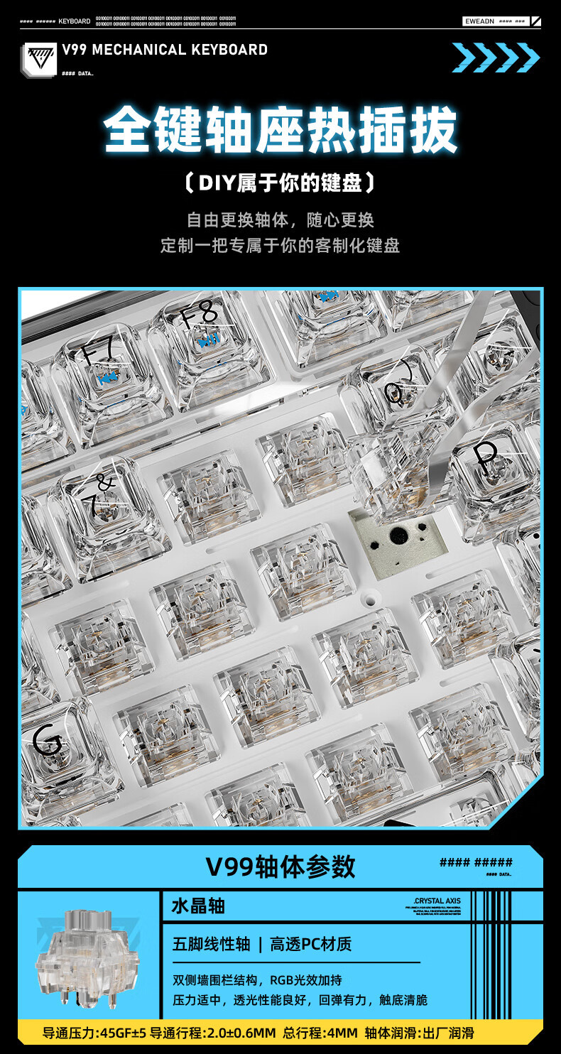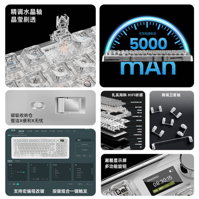 顔色 | V99Pro-霧透白色套裝【三模連接-多功能顯示屏】+無線藍牙鼠標-靜音軸 |