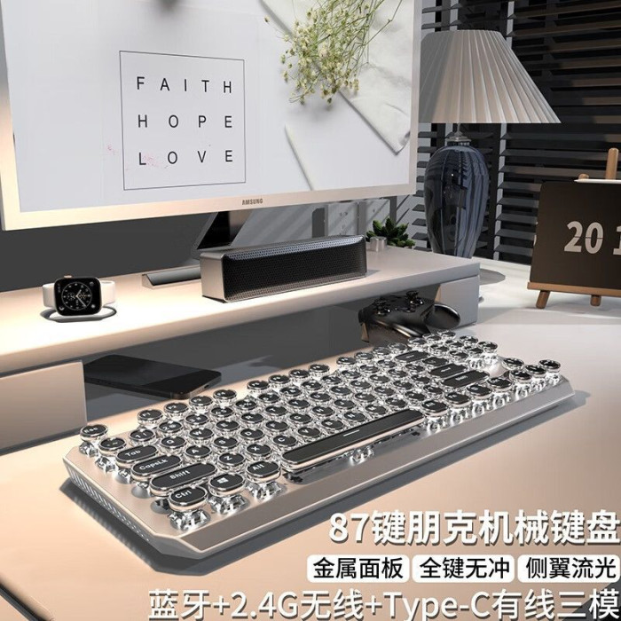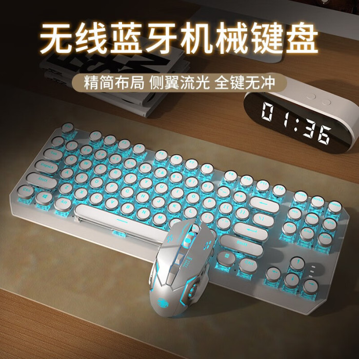 白色朋克版三模【青軸冰光】+無線藍牙雙模鼠標