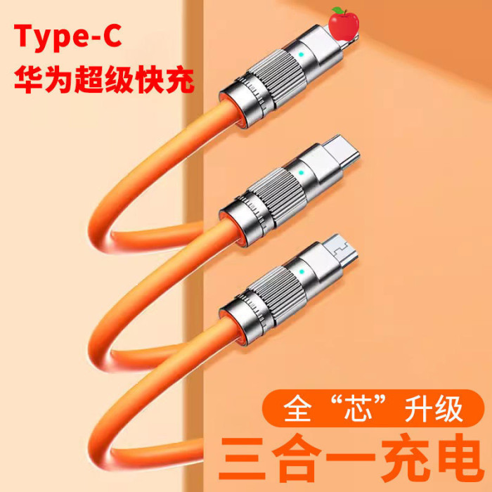 極客線三合一數據線120w超級快充數據線三合一手機充電線一拖三