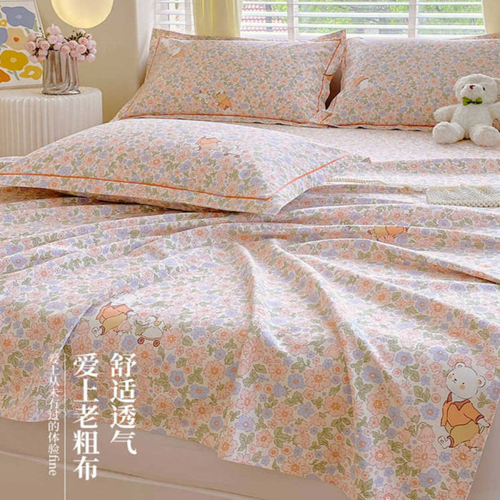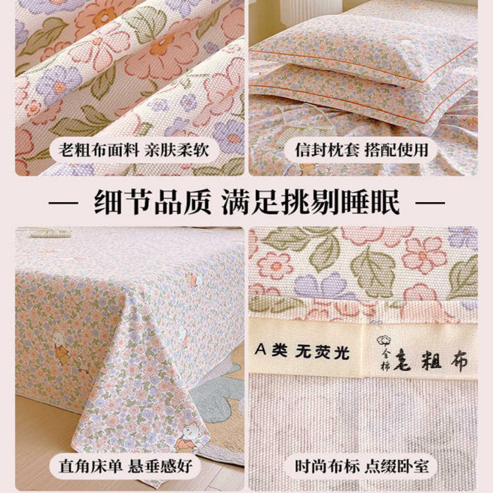 純棉加厚老粗布床單單件100全棉麻涼蓆布料被單人宿舍床笠三件套