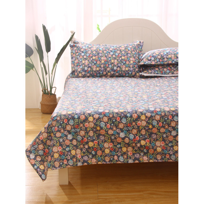 老粗布床單純棉100全棉單件加厚加密田園大花床笠炕單被單三件套