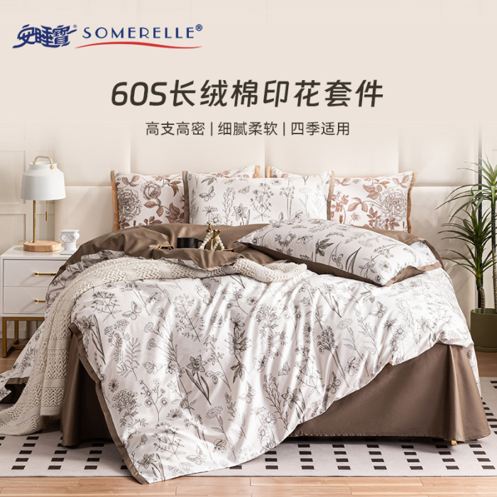 安睡寶60支長絨棉印花被套床單枕套單件舒適柔軟春夏新款套件