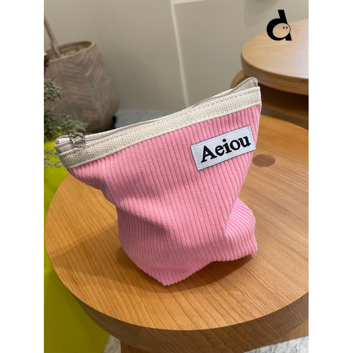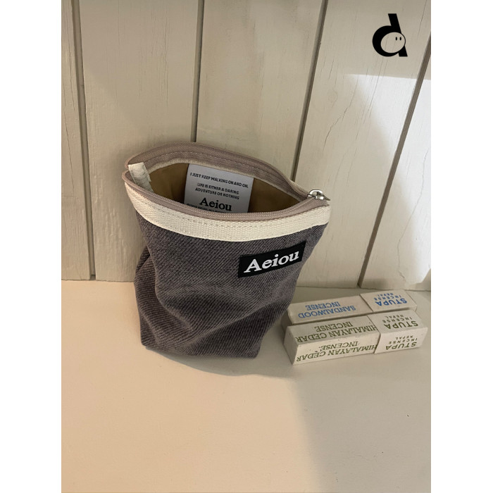 duye度也 韓國Aeiou收納包百搭實用條絨斜紋絨化妝包ins風包中包