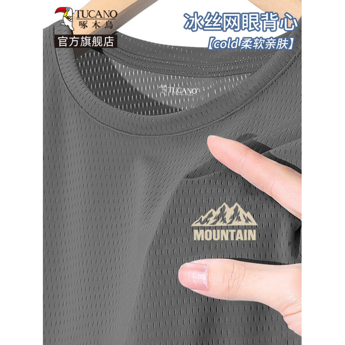 啄木鳥外穿背心男士2025夏季新款男生運動坎肩冰絲速乾無袖T恤YB