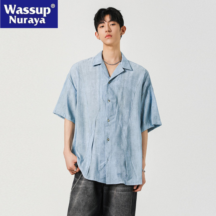 WASSUP NURAYA古巴領襯衫男士夏季薄款冰絲短袖上衣潮流提花外套