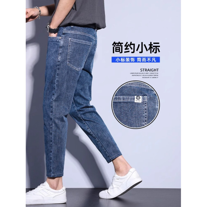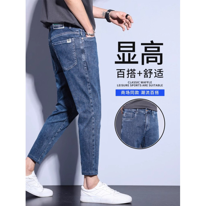 九分牛仔褲男直筒修身小腳潮流牌2025春季新款彈力休閒褲子男裝