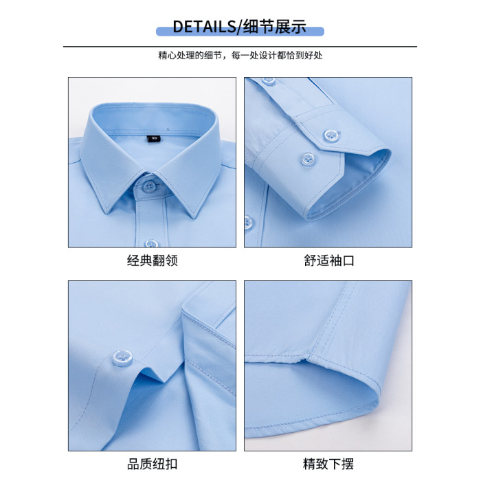 啄木鳥男士短袖白色襯衫夏季新款工裝伴郎服長袖春秋爸爸藍色襯衣