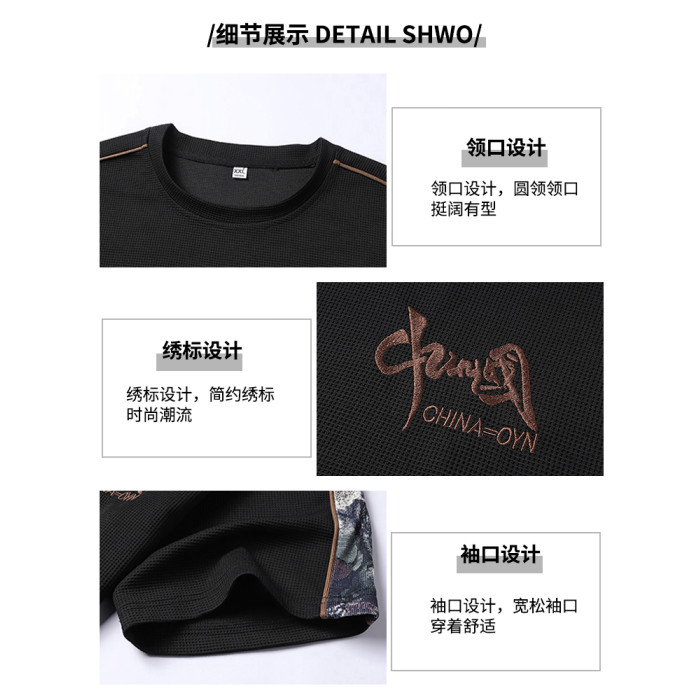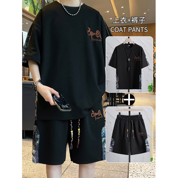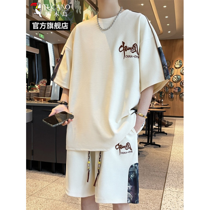 啄木鳥風休閒運動套裝男夏季2025新款大碼短袖t恤短褲兩件套L