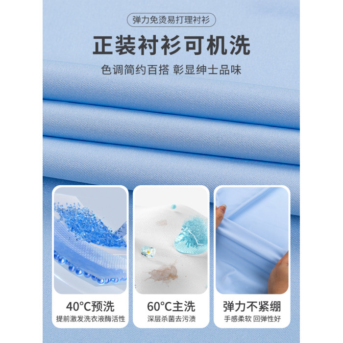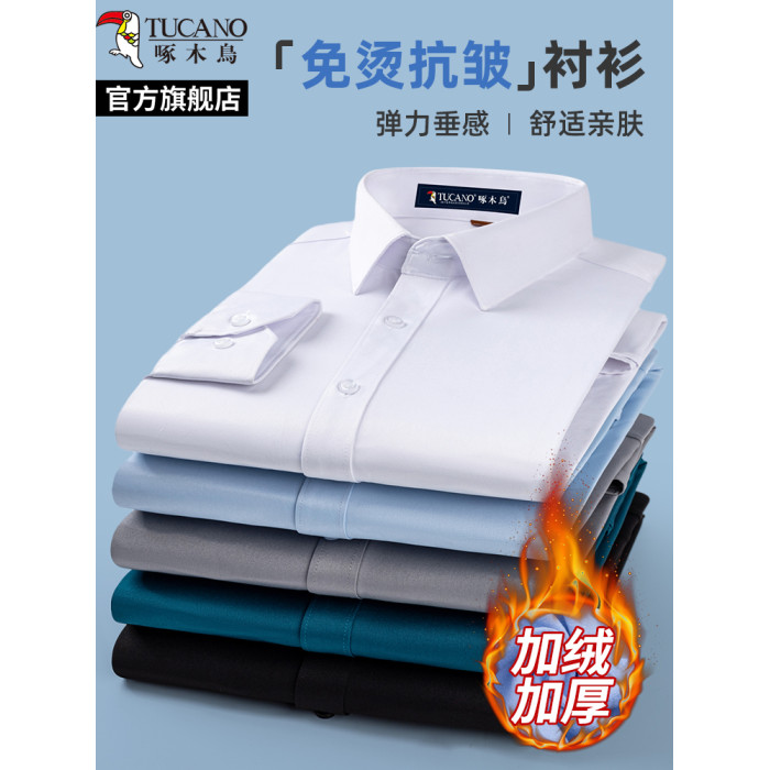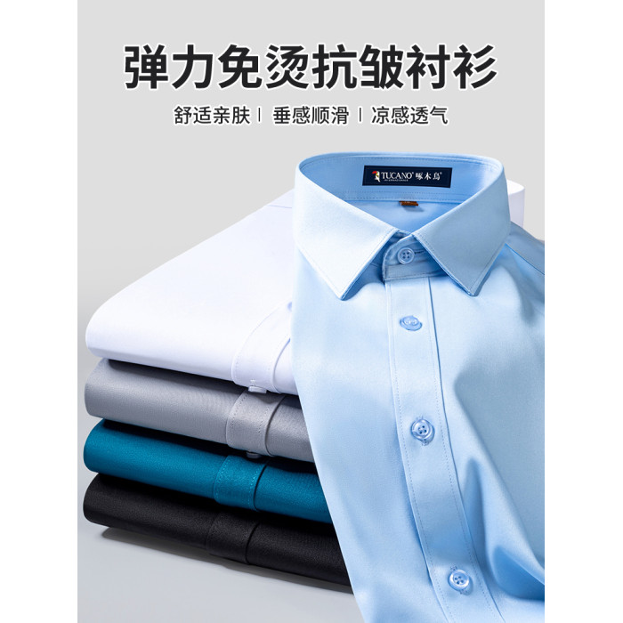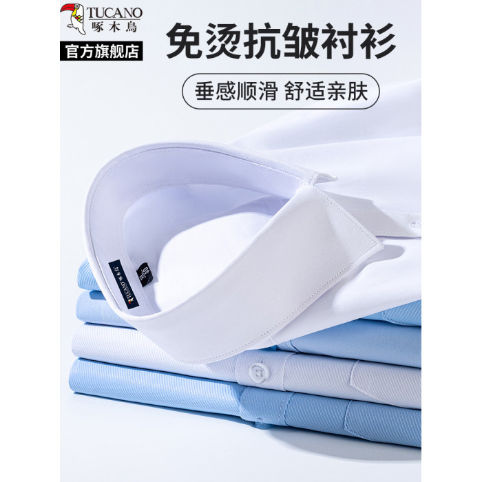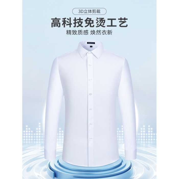 啄木鳥白色男士襯衫長袖2025春秋季商務工裝伴郎免燙襯衣結婚正裝