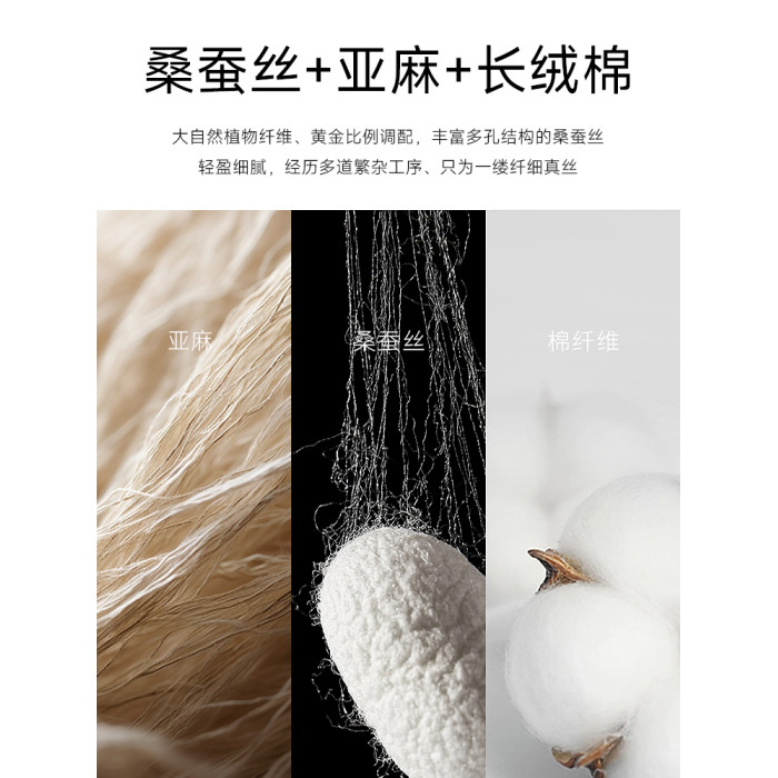 材質成分 聚酯纖維60.7% 棉30.2% 亞麻5.1% 醋酯纖維(醋纖)2.1% 桑蠶絲1.9%