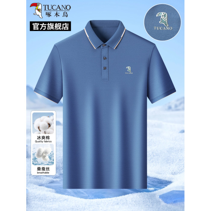 【桑蠶絲7A抗菌】啄木鳥2025夏季新款男士polo衫寬松爸爸短袖t恤C