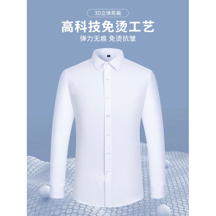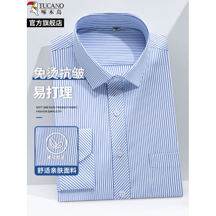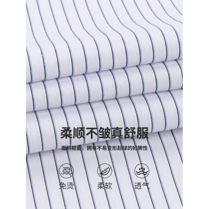 啄木鳥襯衫男士長袖2024春秋季新款工裝爸爸商務藍色條紋短袖襯衣