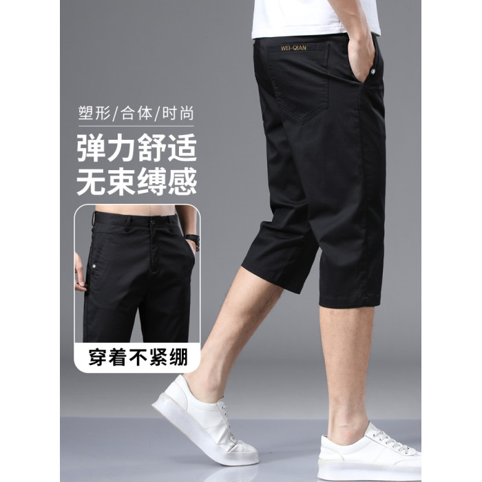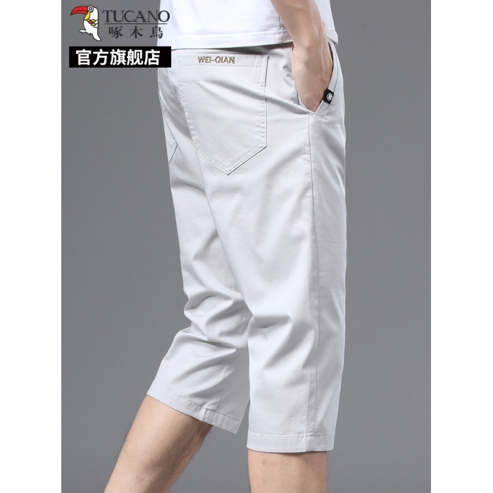 啄木鳥夏季冰絲薄款純棉休閒短褲男士直筒寬松過膝外穿七分中褲K