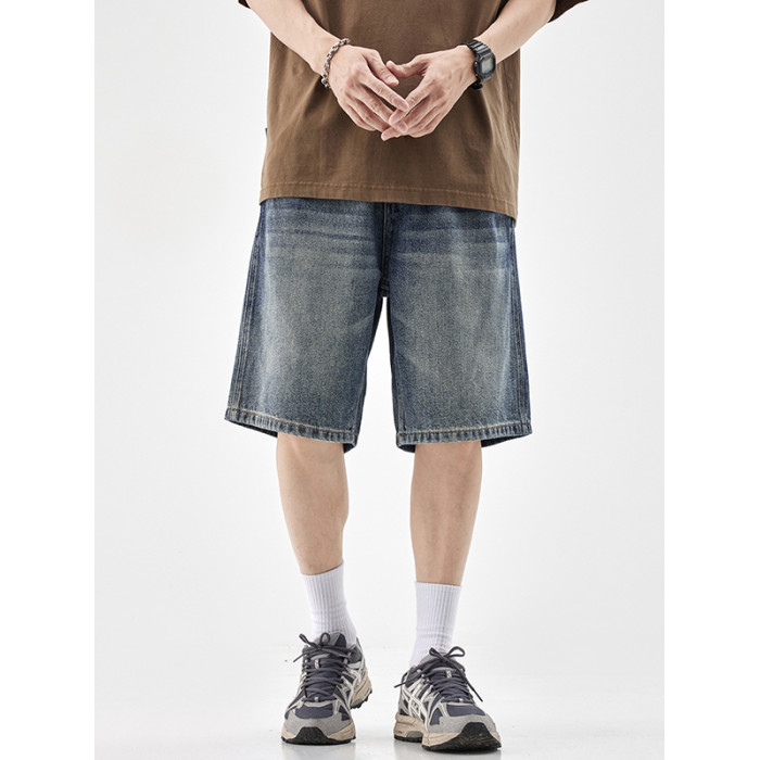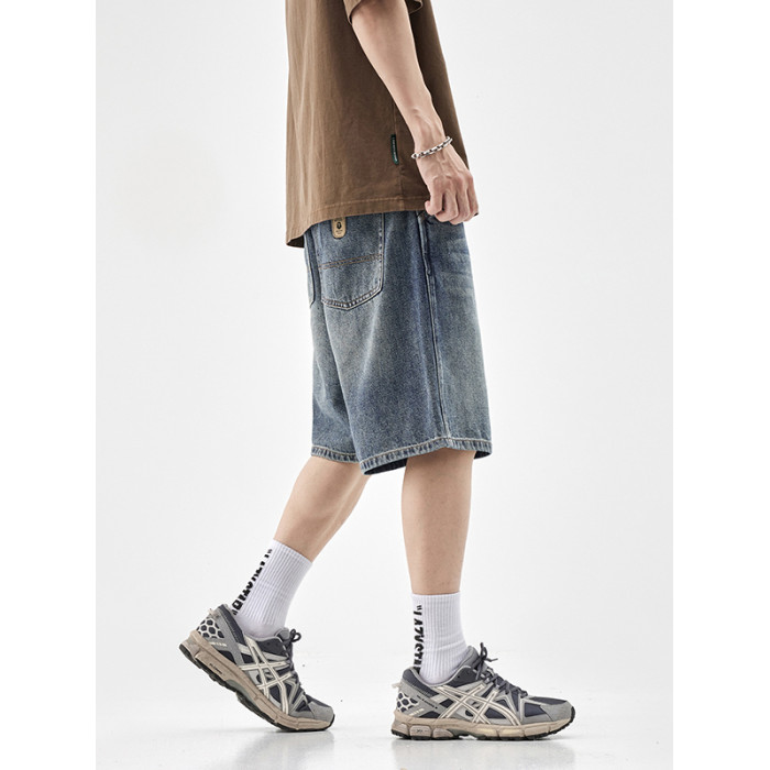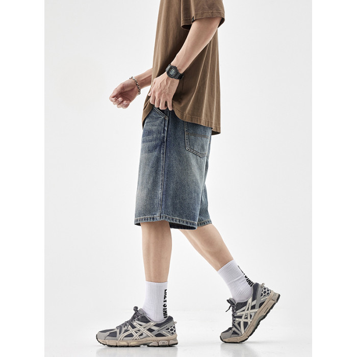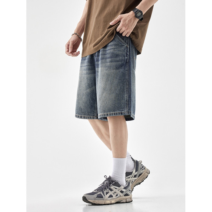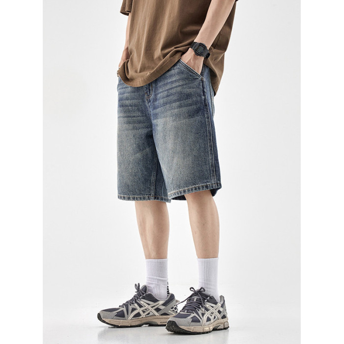 水洗牛仔短褲男士2025夏季新款直筒寬松休閒潮牌百搭五分中褲子
