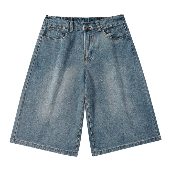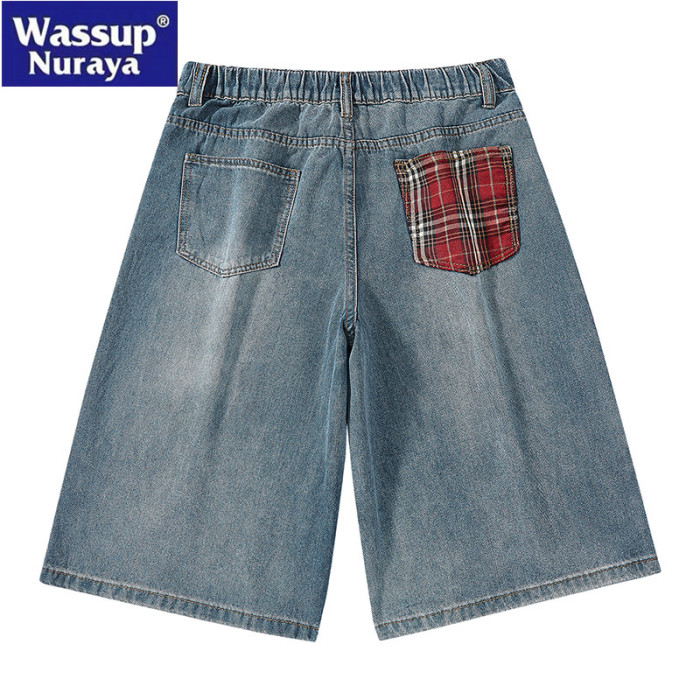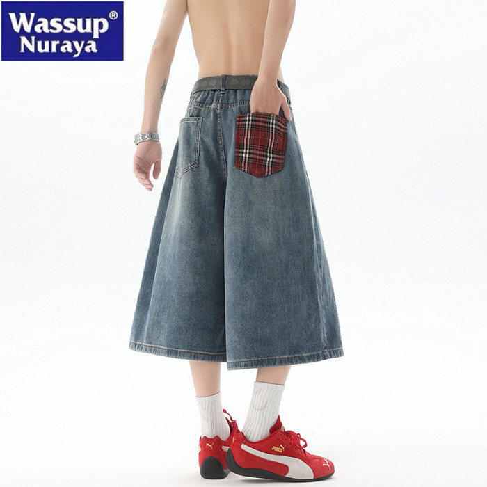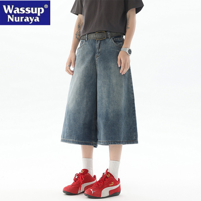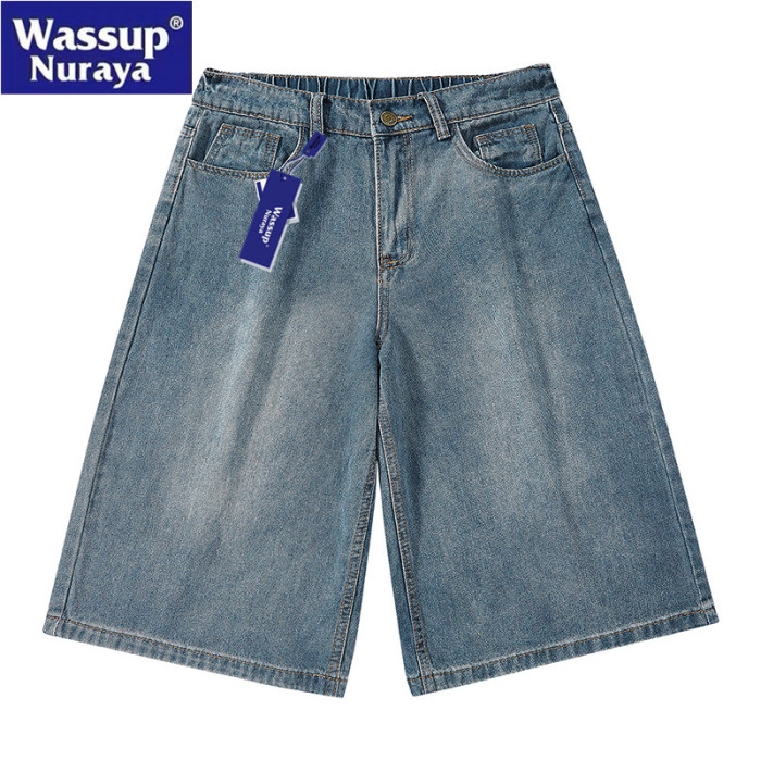 WASSUP Nuraya潮牌美式復古七分牛仔褲男夏季痞帥濶腿休閒短褲