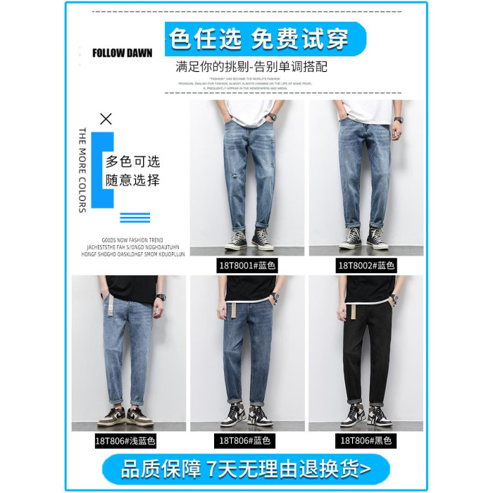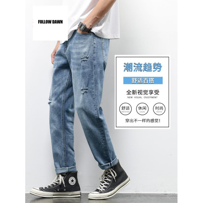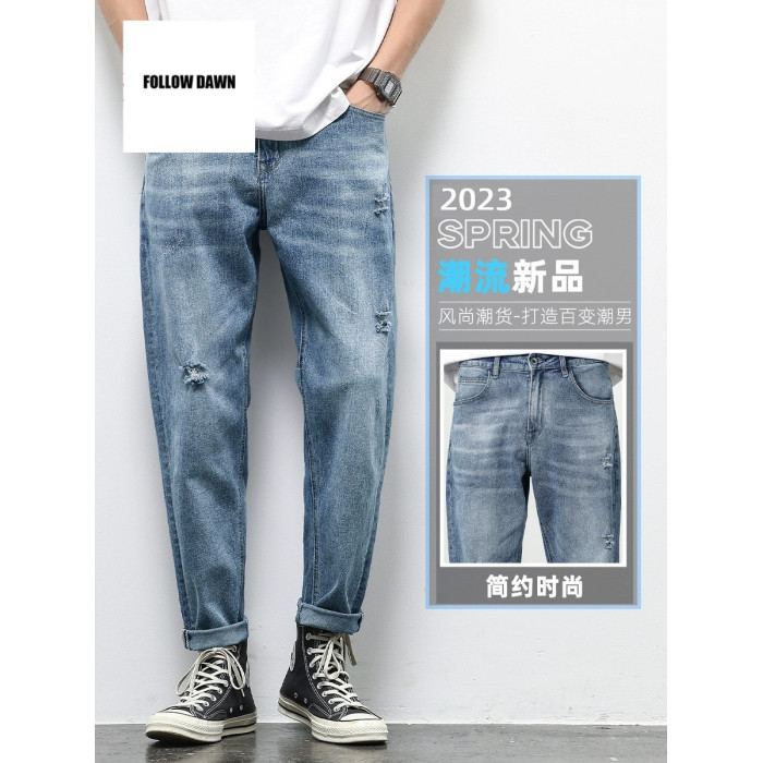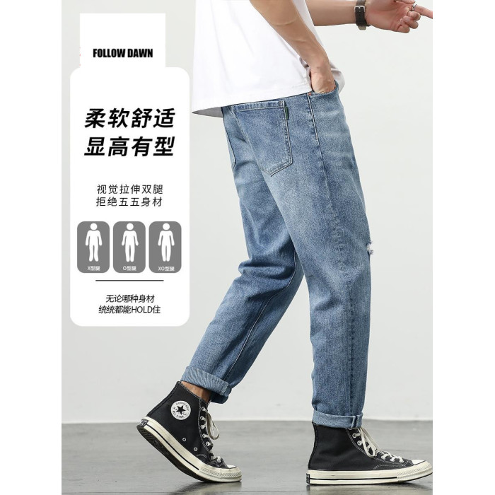 男士牛仔褲男潮牌春秋季新款寬松直筒彈力休閒九分褲