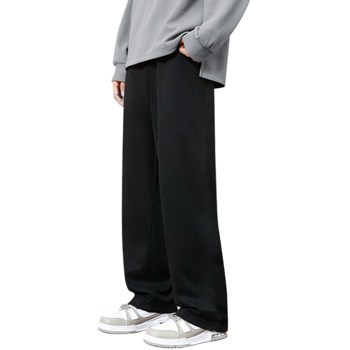 啄木鳥官方重磅直筒褲子男春秋新款男士黑色寬松大碼休閒褲男款YB