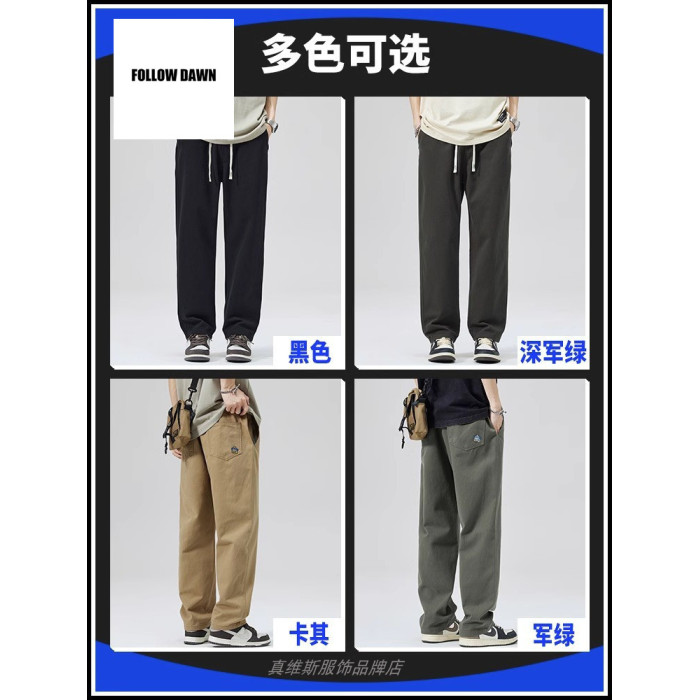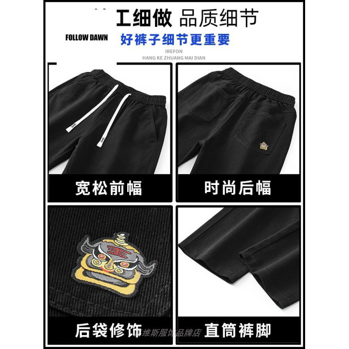 男休閒褲春秋直筒寬松純棉運動濶腿老爹長褲子男生2025新款
