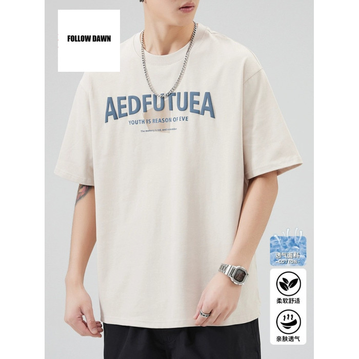 T恤男衣服春2025夏季新款潮牌字母寬松短袖百搭透氣上衣半袖