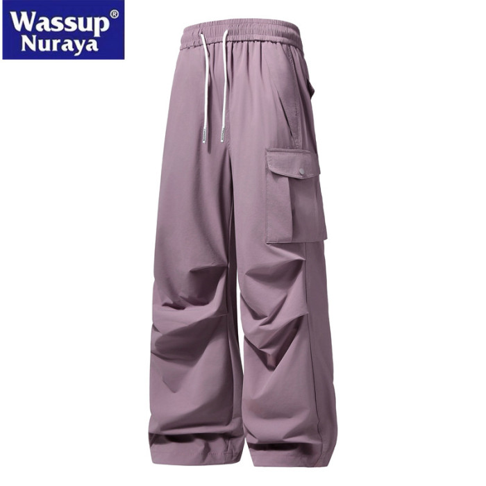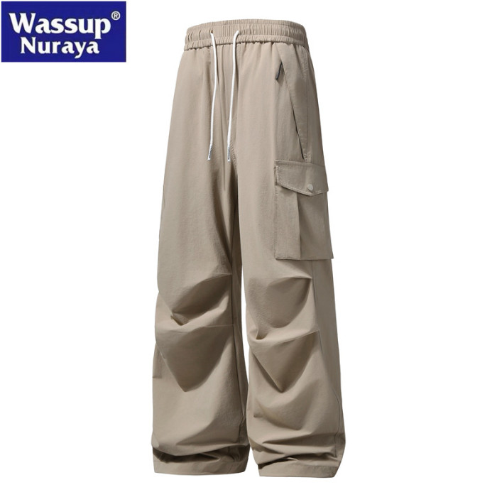 WASSUP Nuraya潮牌休閒褲男直筒工裝褲情侶潮牌百搭運動青年長褲