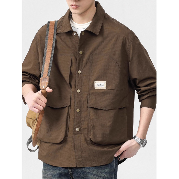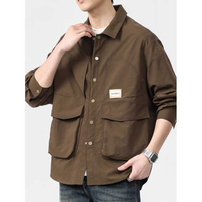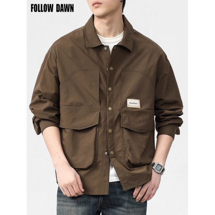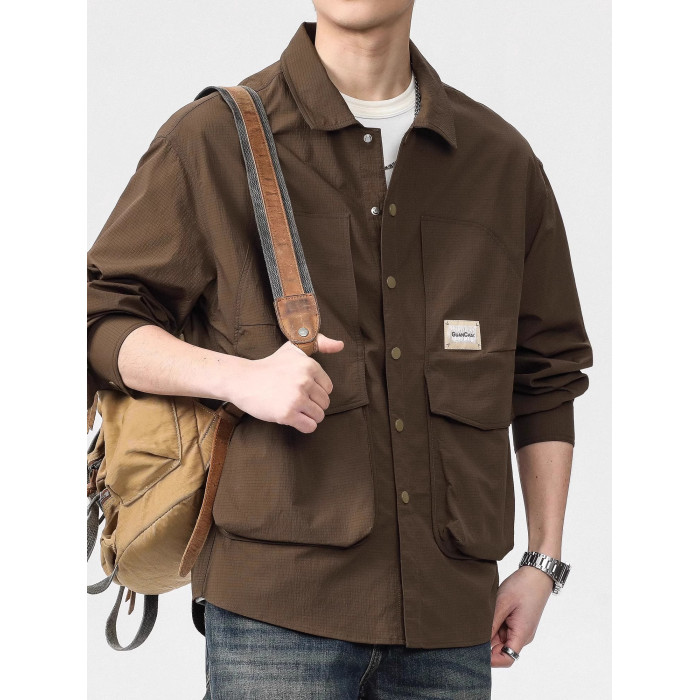美式復古工裝襯衫男長袖2025春季新款潮牌寬松戶外防水夾克外套
