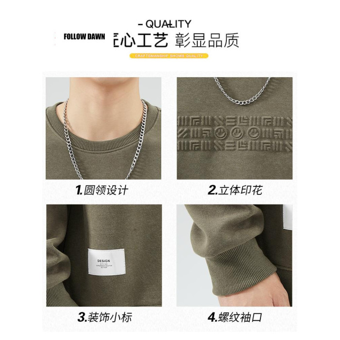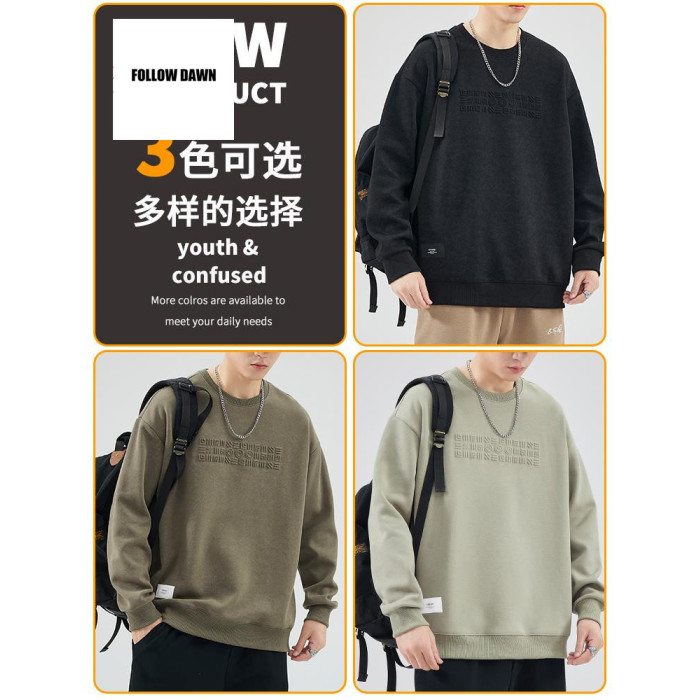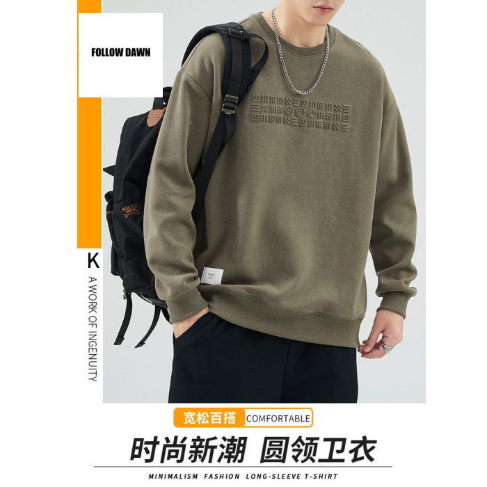 衛衣男士春秋季新款美式街頭圓領長袖t恤秋裝潮牌印花上
