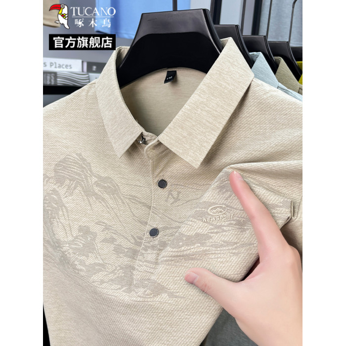 啄木鳥2025新款男士短袖t恤翻領polo衫休閒百搭爸爸父親t恤夏裝C