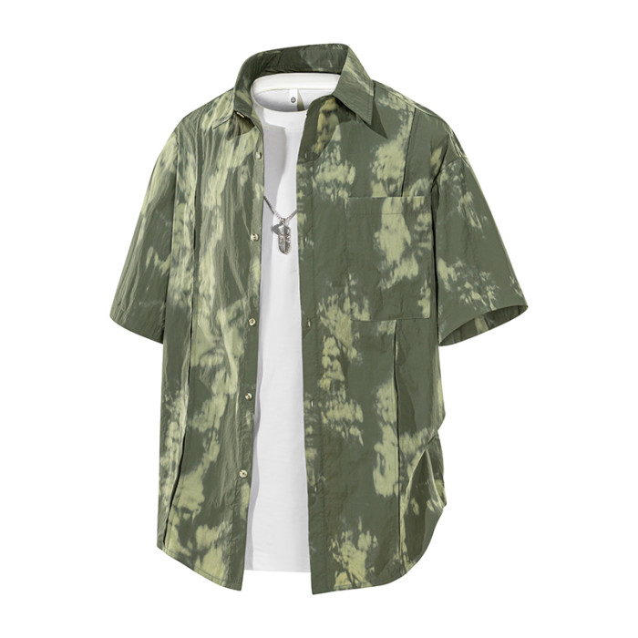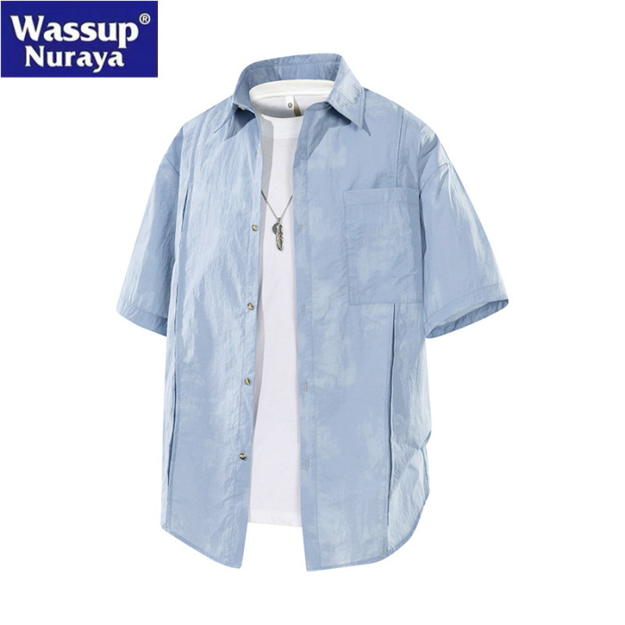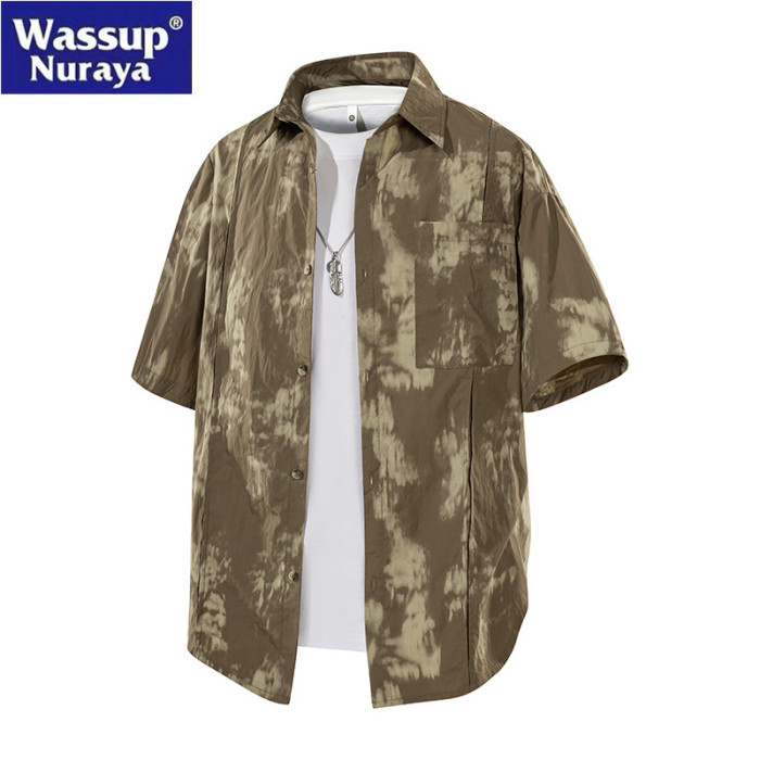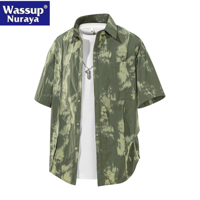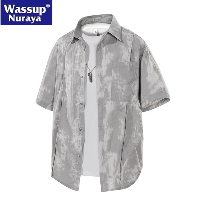 WASSUP Nuraya潮牌紥染短袖襯衫男女寬松情侶款冰絲速乾休閒襯衣