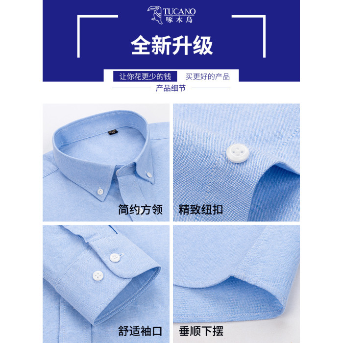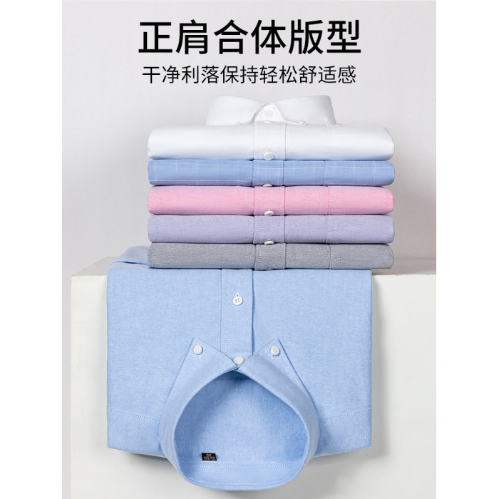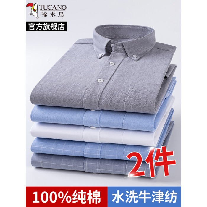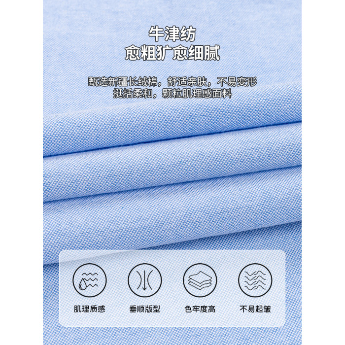 啄木鳥純棉牛津紡白色男士襯衫短袖2025夏季免燙工裝爸爸長袖襯衣