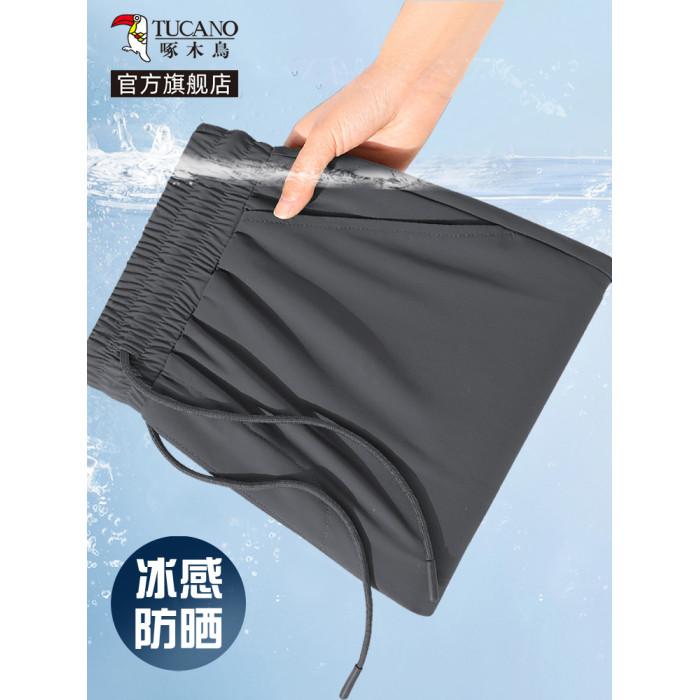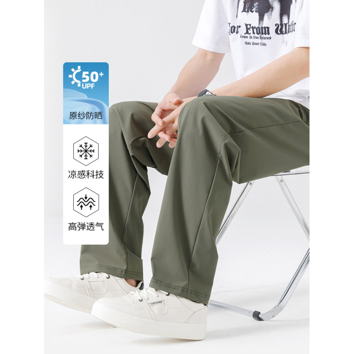 啄木鳥男士休閒褲子夏季薄款2025新款寬松冰絲速乾防曬長褲男款Y